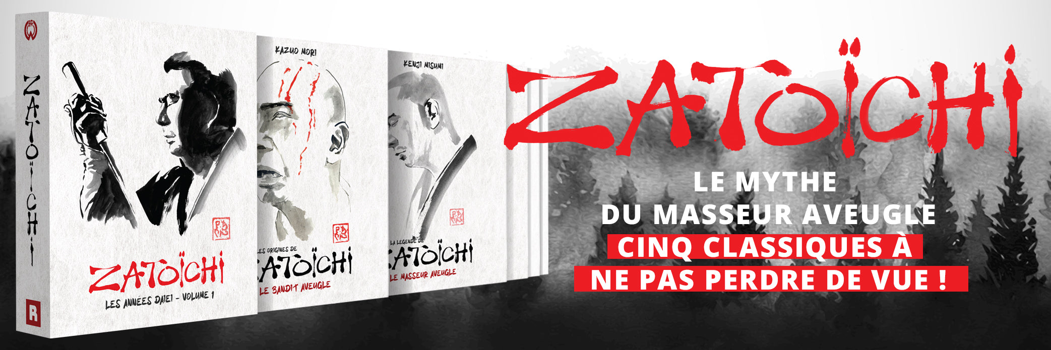 Roboto Films vous propose de plonger dans les débuts de la saga Zatoichi avec cinq films, dont le rare préquel qui mettra Shintaro Katsu dans la peau d'un masseur aveugle très différent de Zatoichi.